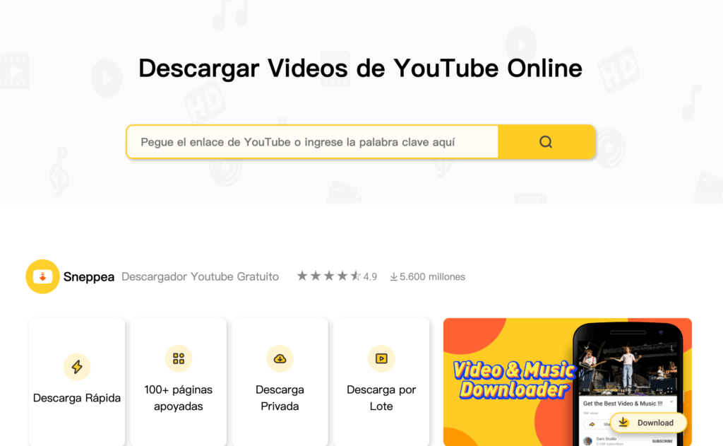 Si quieres bajar videos gratis sin instalar ningún programa, puedes utilizar Sneppea, la cual es una herramienta en línea. Desde su sitio web, vas a poder bajar videos gratis sin programas. Esto hace que sea la mejor opción para disfrutar de tus videos favoritos offline.