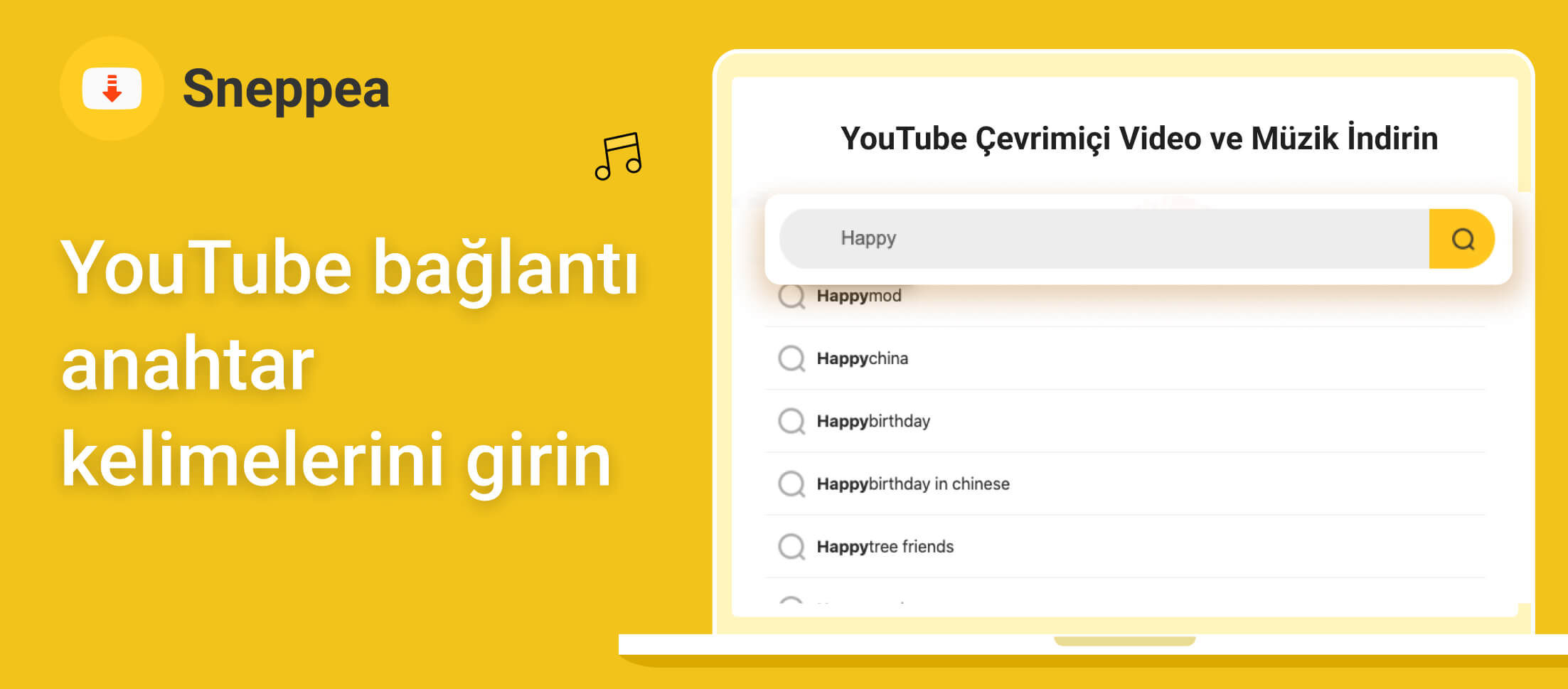 Harika! Artık Sneppea YouTube çevrimiçi film indiricinin internet sitesine gidip kopyalanan videonun linkini girebilirsiniz. İsterseniz anahtar kelimeleri girip, YouTube’dan sonuçları edinip, bir video seçebilirsiniz.