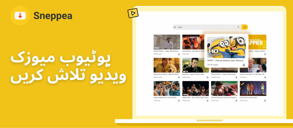 - آن لائن پلیٹ فارم میڈیا کو براہ راست پلیٹ فارم کے ذریعے ڈاؤن لوڈ کرنے کی اجازت دیتا ہے۔ آپ Sneppea پر یوٹیوب ویڈیوز تلاش کرنے کے لیے کلیدی لفظ استعمال کر سکتے ہیں۔